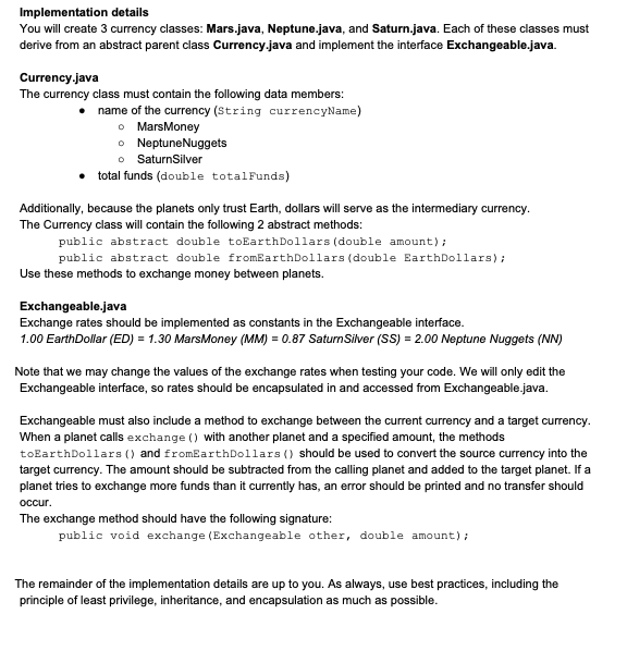 Solved Implementation Details You Will Create 3 Currency Chegg Com